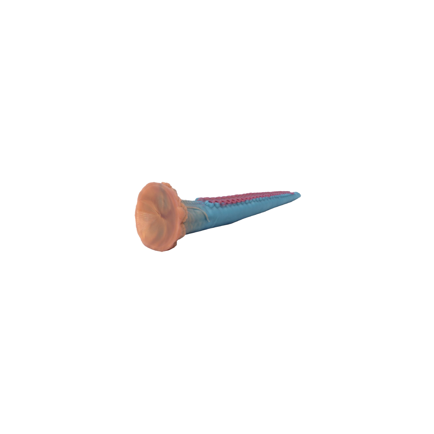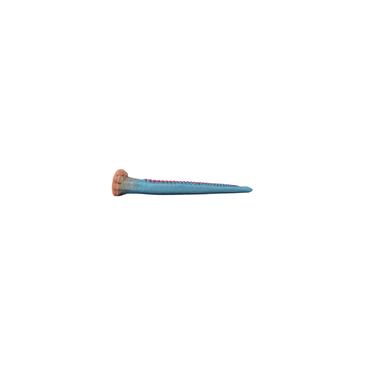 Sa surface est texturée grâce aux nombreuses ventouses du tentacule et sa base large peut aussi être utilisée comme une ventouse.